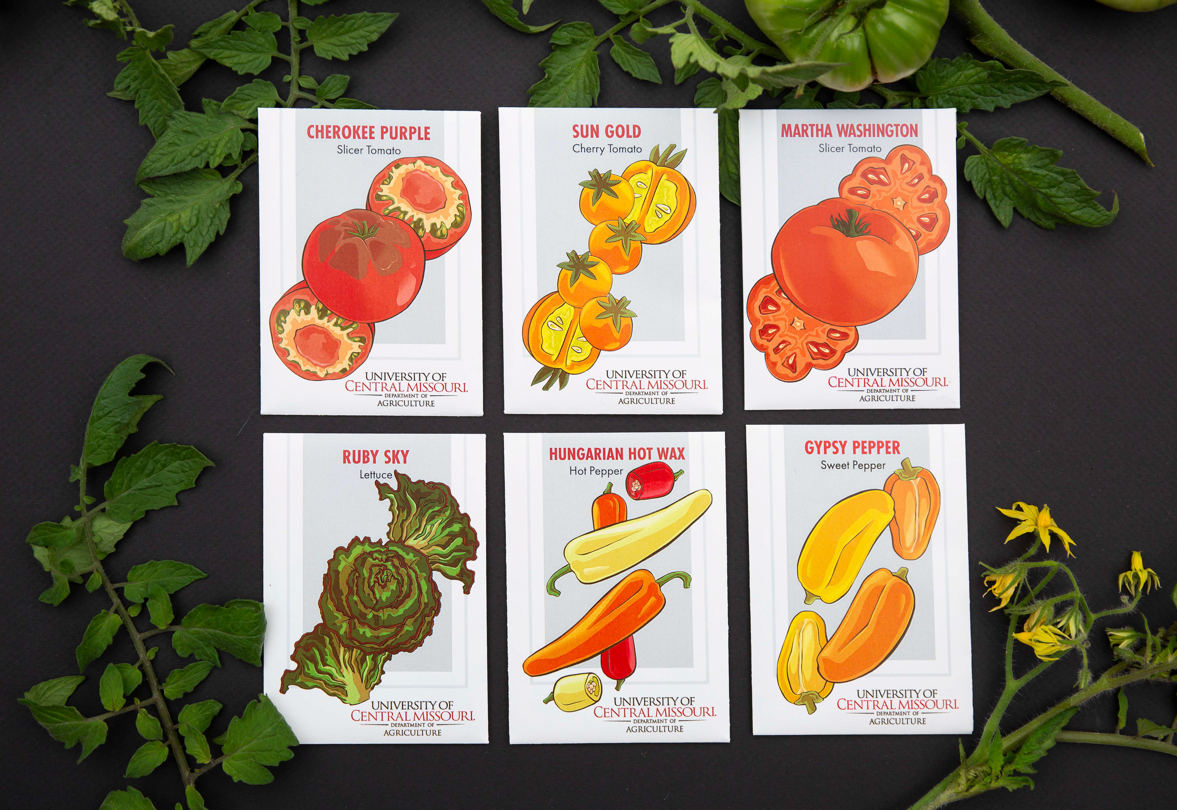 I designed and illustrated a set of 6 seed packets for the University of Central Missouri's Agricultural Department. The packets are handed out at recruitment fairs for UCM.